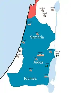 - H. H. Ben-Sasson, A History of the Jewish People, Harvard University Press, 1976, ISBN 0-674-39731-2, page 246: "When Archelaus was deposed from the ethnarchy in 6 AD, Judea proper, Samaria and Idumea were converted into a Roman province under the name Iudaea."