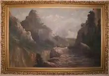 In 1867, Charles F. Hoffman of the California Geological Survey conducted the first survey of the valley. Hoffman observed a meadow "well timbered and affording good grazing", and noted the valley had a milder climate than Yosemite Valley, hence the abundance of ponderosa pine and gray pine.[5] The valley was slowly becoming known for its natural beauty, but it was never a popular tourist destination because of extremely poor access and the location of the famous Yosemite Valley just twenty miles to the south. Those who did visit it were enchanted by its scenery, but encountered difficulties with the primitive conditions and, in summertime, swarms of mosquitoes.[21][33] Albert Bierstadt, Charles Dorman Robinson and William Keith were known for their landscapes that drew tourists to the Hetch Hetchy Valley. Bierstadt described the valley as "smaller than the more famous valley ... but it presents many of the same features in his scenery and is quite as beautiful."[34]