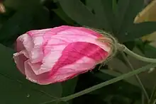Hibiscus splendens, the splendid hibiscus, is a species of flowering shrub or tree in the mallow family, Malvaceae. Other common names include hollyhock tree and pink cottonwood. H. splendens is a fairly common plant native to eastern Australia. The range of natural distribution is from Wollongong (35° S) in the state of New South Wales to Blackdown Tableland National Park (23° S) in central east Queensland. The habitat is on clearings or disturbances around the margins of the drier rainforests.