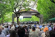 The Hibiya Open-Air Concert Hall (Japanese: 日比谷野外音楽堂, Hepburn: Hibiya Yagai Ongakudō) is an outdoor theater in Tokyo, Japan's Hibiya Park.[1] There are actually two concert halls; the smaller was erected during the Meiji era, and the larger was first built in the Taishō era. The larger venue is colloquially abbreviated to "Yaon" (野音).[2]
