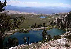 The Hidden Lakes are a pair of glacial tarns in the Ruby Mountains, in Elko County in the northeastern part of the state of Nevada.[1] They are located on a shelf on the Ruby Crest above Soldier Basin, at approximately 40°44.6′N 115°17.0′W, and at an elevation of 9,500 feet (2,900 m). They have a combined area of approximately 9 acres (3.6 hectares), and a depth of up to 32 feet (9.8 m).