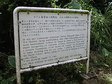 On 18 February 1944, Obata was assigned command of the Thirty-First Army (Japan), with the IJA 29th Division and IJA 53rd Division in charge of the defense of the Mariana Islands from the approaching Allied forces. He was away from his headquarters on Saipan at the time of the American invasion and established his new command post on Guam. However, at the Battle of Guam he ordered an all-out attack at midnight, 25 July 1944, but was soon overwhelmed by superior American numbers and firepower, losing more than 80% of his men. He retreated with his forces to the northern end of the island, and most of these men were killed in attacks on American armored forces in early August. Obata committed seppuku on 11 August 1944 in Yigo, Guam, ending Japanese attempts to hold the island.[2] Obata was promoted posthumously to the rank of general.