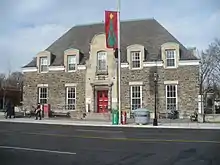 In 1915, Bloor Street was the site of a major public works at the north-west corner of High Park. The street, west of High Park Avenue, was crossed by creeks that emptied into Grenadier Pond. The creek banks were steep, making the roadway treacherous and difficult for traffic. A rail trestle was built to cross the gap at a level of 60 feet. The rails were used for rail cars to dump soil around the trestle. The trestle was completely buried and the present Bloor Street roadway built on top.[2] Existing north-south roadways connecting to Bloor Street were raised to meet the new level of Bloor Street and this facilitated the development of the neighbourhood. The first building in Canada designed by a Canadian trained female architect was constructed in the neighbourhood during this period. This landmark building by Jean Hall is a 1925 fourplex located at 63 Jerome Street.[3]