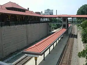 High Point Station was originally built in 1907, by Southern Railway, and was designed in Richardsonian Romanesque, with a rusticated ashlar base and a tiled hip roof. In the late 1930s, a trench was dug so rail and automobile traffic would not impede each other through downtown High Point; a walkway across the tracks and a staircase to an island platform at track level was constructed. In 1979, Amtrak took over passenger operations at the station from Southern Railway. Between 2002 and 2003, a $6.8 million renovation project was done that included making the station accessible compliant; the station reopened on December 9, 2003.[2][3]