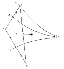 In mathematics, specifically in the area of hyperbolic geometry, Hilbert's arithmetic of ends is a method for endowing a geometric set, the set of ideal points or "ends" of a hyperbolic plane, with an algebraic structure as a field. It was introduced by German mathematician David Hilbert.[1]