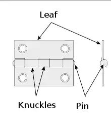 The hollow—typically circular—portion creating the joint of the hinge through which the pin is set. The knuckles of either leaf typically alternate and interlock with the pin passing through all of them. (aka. loop, joint, node or curl)