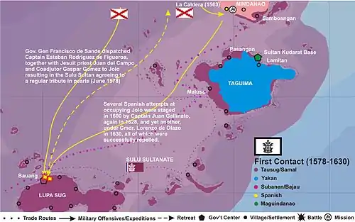 Spanish and Tausug fleets engaged each other in sea battles and skirmishes not far from the western shores of the islands. Many of their ships were scuttled or sunk, sometimes with precious cargoes of traded goods and Mexican silver pieces meant for the fort in Zamboanga and the naval squadron at Isabela, as well as goods en route to Jolo from the Mindanao mainland.