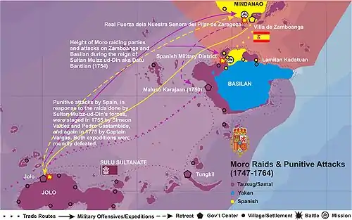- 1754 - Sultan Muizz ud-Din (former Datu Bantilan), increased his raids and attacks both on Basilan and Zamboanga