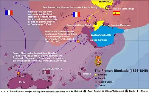 - 1844–45 - French Navy blockades Basilan's premier ports