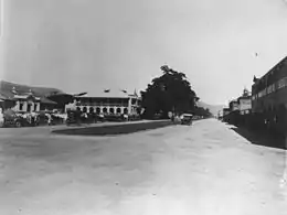The town's first water supply opened in 1911, and was described in the local press as "a valuable aid to sanitation."[50] In July 1912, the brick and timber Cairns District Hospital was opened, which helped foster the town's self-reliance to cope with medical emergency, particularly in a tropical environment. The two-storey building, located on the esplanade, had taken two years to construct. It replaced an earlier basic bungalow-style hospital, in which the office had at times also served as an operating theatre.[51]