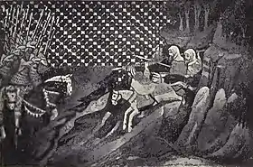 The name Uí Cheinnselaig derives from Énna Cennsalach (in English, Enna Kinsella),[26] King of Leinster in the early 5th century, of whom the tribe were descendants.[28] Énna Cennsalach claimed descent from Cathair Mór,[29] said to have been High King of Ireland in the 2nd century AD,[30][31] and historically this seems fairly plausible.[32] Cathair Mór was said to have descended from Labhraidh Loingseach,[33] also said by some to have been a much earlier High King of Ireland[31] – this is less certain, however, as at this point history and legend become intertwined.[34]