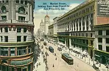 Schmitz was less corrupt than the mayors who preceded him,[28] but he had to deal with Ruef who operated from his offices at California and Kearney Streets. He wrote most of the mayor's official papers and conducted an ongoing series of meetings with Mayor Schmitz, city commissioners, officials, seekers of favors or jobs, and others. Officially an unpaid attorney for the mayor's office, he was the power behind the mayor's chair.[27]