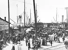 Seattle, as well as the rest of the nation, was hard hit by the Panic of 1893 and, to a lesser extent, the Panic of 1896. Unlike many other cities, it soon found salvation in the form of becoming the main transportation and supply center for stampeders heading for the Klondike gold rush. When the steamer SS Portland arrived at Schwabacher's Wharf in Seattle July 17, 1897, the Seattle Post-Intelligencer scooped all other U.S. newspapers with the story that a "ton of gold" had arrived from Alaska. A publicity campaign engineered largely by Erastus Brainerd successfully convinced the world that Seattle was the place to be outfitted for the journey to Alaska, and Seattle became a household name, literally overnight. The miners mined the gold. Seattle mined the miners.[40]