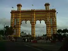 The Torre del Oro (Tower of Gold) is a 12-sided military watchtower built during the time of the Almohad dynasty. The tower, situated near the bank of the Guadalquivir, was built around 1200 by order of the Muslim Governor Abu Elda,[45] who ordered a great iron chain to be drawn across the river, with two military watchtowers built on opposite sides. These served as anchor points to control access to Seville via the waterway.[46] The surviving tower was given the name "Torre del Oro", supposedly because it was decorated with golden azulejo tiles.[47] During the Muslim rule it was used as a prison and as a shelter during floods, among other purposes.[48]
