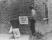 Early in the fall of 1966, Dean of the Faculty David Weiser wrote a letter to Mullin requesting his resignation.[33] This was rejected, and Weiser resigned in February 1967, the fourth member of the faculty to do so.[34][35] Mullin released a statement through a Chicago public relations firm stating that "the recent turmoil instigated by a now former member of the faculty is passing with the receipt of his resignation."[35] However, 18 members of the faculty responded with a statement praising Weiser.[35] The Board expressed its support for Mullin in its March 1967 meeting, at which registrar James M. Green was present as a representative of the dissidents.[35] The Board also set up a committee of faculty and trustees to improve communication, and honored a request by the dissidents for increased administrative staff.[35][36]