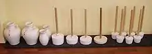 The makiage kigu (巻揚器具, "wrist roller") is a weight hanging by a rope from a wooden handle. The practitioner grasps the handle with the weight hanging in the middle, and twists the handle to wrap the rope around the handle. The handle is raised and lowered throughout the twisting to strengthen the wrists.