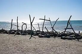 Every January, Hokitika beach hosts the Driftwood and Sand Festival. The festival involves members of the public and a sponsored artist constructing sculptures out of beach debris. Driftwood and Sand originated in beach festival run by Hokitika artist Donald Buglass in November 2002, and it has been run as an annual festival since 2003.[24]