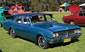 Because of its luxury positioning, the Brougham was only available with an automatic transmission, first a two-speed, then a three-speed after the HG's launch. The only engine available in the original HK Series Brougham was a Chevrolet 307-cubic-inch (5.0 L) V8.[4] The HT series was launched with the new Holden designed and built 308 cubic inch V8, and was the first Holden to be powered by this engine (the rest of the HT range got the 307 until the 308 was made available across the HT range in September 1969). The 308 was carried over to the HG Series Brougham.[5]