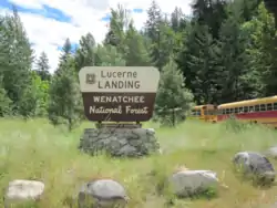 Holden Village is located in the Cascade Range in Washington, in the Wenatchee National Forest.[3][4][5] Inaccessible by car, visitors (volunteers, guests, and through-hikers) generally take a ferry up Lake Chelan from Chelan or Fields Point Landing to Lucerne where they board a Village bus which takes them up an 11-mile (18 km) gravel road through a set of 12 switchbacks, and into Holden Village. Holden staff and guests greet arriving buses with welcoming applause. It is also possible to hike into Holden Village through the Cascade mountains using a number of routes.