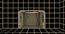 The inside of the holodeck, when not running a program, is typically shown as an empty room of medium size. The floor and walls are depicted in different ways, either covered in a bright yellow grid on a black background (in Star Trek: The Next Generation), a metallic grid structure (in Star Trek: Voyager), or various other mechanisms.