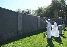 Holy Rood Cemetery is owned by Georgetown University. In the 1980s, the university explored the possibility of disinterring the bodies buried there so the land could be put to other uses, but was blocked by a legal action brought by the remaining holders of burial rights.[1] Until recently, the condition of the cemetery reflected years of disuse and neglect. Headstones had toppled, there were weeds and invasive shrubs, and the roadway was in disrepair.[3]