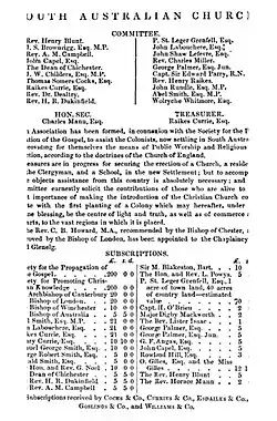The land on which the church stands was donated by Pascoe St Leger Grenfell along with 40 acres of country land for a cemetery and "glebe" lands. Pascoe St Leger Grenfell, the holder of a preliminary land order, Raikes Currie and the Reverend Sir Henry Robert Dukinfield of the Society for the Propagation of the Gospel in Foreign Parts (SPG) who held the collective funds and, thirdly, the men to whom they were transferring their powers, namely James Hurtle Fisher, Osmond Gilles and Charles Mann. Fisher was to be resident commissioner in South Australia of the Colonisation Commission, having responsibility independent of the governor for the administration of land in the new colony; Gilles was to be the treasurer and Mann the advocate general or principal legal officer of the colony. Grenfell transferred control over order no. 171 for a town acre and over 40 acres of country land to be selected in conjunction with the town acre, later known as Trinity Gardens. The conveyance did not have to specify that Currie and Dukinfield hand over money and the portable church, but it may be presumed they did so — alternatively they may have entrusted these resources to John Morphett, appointed as SPG's attorney in the colony. The objects of the trust were to use the town acre as a site for "the erection of a church where Divine Service could be celebrated according to the rites and ceremonies of the Church of England". The same acre was also to provide space for a schoolroom and a parsonage and garden for the minister of the church. The country land was to provide six to eight acres for a cemetery and the remainder to be "glebe land", in the familiar phrase of the Church of England, to provide income for the support of the minister.[2]