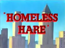 Homeless Hare is a 1950 Warner Bros. Merrie Melodies cartoon short directed by Chuck Jones.[1] The short was released on March 11, 1950, and stars Bugs Bunny.[2] Some television broadcasts omit the shot of Bugs dropping a brick on Hercules' head. The Blue Ribbon release also removed the shorts original Bugs Bunny in card, joining only Hot Cross Bunny, Knights Must Fall & Rabbit Hood in this distinction.