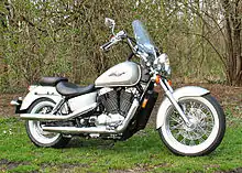 The Honda Shadow refers to a family of cruiser-type motorcycles made by Honda since 1983. The Shadow line features motorcycles with a liquid-cooled 45 or 52-degree V-twin engine ranging from 125 to 1,100 cc engine displacement. The 250 cc Honda Rebel is associated with the Shadow line in certain markets.