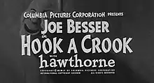 Hook a Crook is an American comedy short released by Columbia Pictures on November 24, 1955. It starred Joe Besser and Jim Hawthorne.