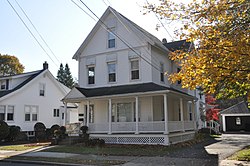 The House at 54 Spring Street in Wakefield, Massachusetts is a well-preserved Queen Anne Victorian house. The 2+1⁄2-story house was built c. 1889–90, and is most notable for its detailed shingle work. The house has an L shape, with a porch that wraps around the front and right side, into the crook of the L. The windows are topped by shed-roofed hoods with cut shingles, and there are bands of decorative shingle work filling the north side gables.[2]