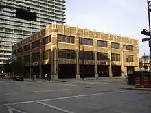 Shelor Motor Company was the building's first occupant and used it as an automobile showroom.[23] Beginning in the 1960s,[18] the facility served as the Gillman Pontiac dealership building.[24] In 1994 Suzanne Sellers painted a 50-foot (15 m) by 240-foot (73 m) trompe-l'œil mural that is located around two of the building's sides. This mural is visible from Leeland, Milam, and Travis streets.[18] In 2008 the Houston Press building received damage from Hurricane Ike since the hurricane caused water to go through the parking area on the building's roof into the offices. In 2010 the Houston Press installed new energy efficient windows in place of the original glass windows on the facility's second and third floors.[25] On the weekend after Friday October 25, 2013 the Houston Press was scheduled to move to its new offices in Midtown,[18] then on 2603 LaBranch Street.[25]