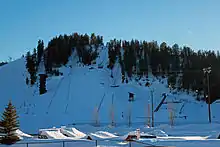 The ski area has produced 89 Olympians in both alpine and Nordic events. With a vertical drop of 134 metres (440 ft), it has one chairlift, two carpets, and one Poma lift.[1][2]