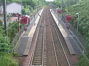 There is a half-hourly service at the station. Trains run from Ayr-Glasgow Central, calling at all stops between Glasgow and Ayr.[2] This drops to hourly in the evening and on Sundays, when trains run to either Ardrossan Harbour or Largs.