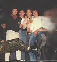 Born in Shoreditch, London, England and an engineer by trade, Tom McCourt formed The 4-Skins in late 1979 along with Gary Hodges, Steve 'H' Harmer and Gary Hitchcock.[3] Their first concert was in summer 1980, supporting The Damned and Cockney Rejects at the Bridge House in Canning Town. McCourt, Hodges and Harmer were all part of the Cockney Rejects road crew, as featured on the back cover of the album Greatest Hits Volume 1.[3]