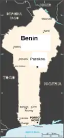 Maga's rise to power occurred during a period of intense regionalism, spurred by the historical resentment shared by members of the former kingdoms of Abomey, Porto Novo, and disorganised tribes from the north.[12] Its result was the creation of three de facto tribal zones: the north, southeast, and southwest, which were led by Maga, Sourou Migan Apithy, and Justin Ahomadégbé-Tomêtin, respectively.[13] Maga's Ethnic Group of the North (later the Dahomeyan Democratic Movement), which merged into the Dahomeyan Democratic Rally in 1957, received little support outside his northern headquarters.[14] Even then, most of his backing came from the Bariba, while Apithy was mostly backed by the Yoruba and Ahomadégbé-Tomêtin, the Fon and Gouns.[15] Regionalistic attitudes would only intensify during the rest of the political careers of the three men,[13] collectively known as Dahomey's triumvirate.[16]