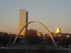 ![]() The Hulme Arch Bridge, with the Beetham Tower in the background, 2008 | |