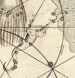 In astronomy, constellations named after arthropods include the zodiacal Scorpius, the scorpion,[114][115] and Musca, the fly, also known as Apis, the bee, in the deep southern sky. Musca, the only recognised insect constellation, was named by Petrus Plancius in 1597.[116]