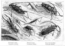 In 1968, Erwin Schimitschek claimed cultural entomology as a branch of insect studies, in a review of the roles insects played in folklore and culture including religion, food, medicine and the arts.[3] In 1984, Charles Hogue covered the field in English and from 1994 to 1997, Hogue's The Cultural Entomology Digest served as a forum on the field.[4][5] Hogue argued that "Humans spend their intellectual energies in three basic areas of activity: surviving, using practical learning (the application of technology); seeking pure knowledge through inductive mental processes (science); and pursuing enlightenment to taste a pleasure by aesthetic exercises that may be referred to as the 'humanities.' Entomology has long been concerned with survival (economic entomology) and scientific study (academic entomology), but the branch of investigation that addresses the influence of insects (and other terrestrial Arthropoda, including arachnids and myriapods) in literature, language, music, the arts, interpretive history, religion, and recreation has only become recognized as a distinct field" through Schimitschek's work.[3][6][7] Hogue set out the boundaries of the field by saying: "The narrative history of the science of entomology is not part of cultural entomology, while the influence of insects on general history would be considered cultural entomology."[8] He added: "Because the term "cultural" is narrowly defined, some aspects normally included in studies of human societies are excluded."[8]