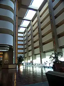The Hyatt Regency Phoenix is a convention hotel in Downtown Phoenix, Arizona, United States. It is 317 feet (97 m) tall and has 24 floors. It was completed in 1976. The top floor has a revolving restaurant. It was designed by Charles Luckman and Associates to complement the Phoenix Civic Plaza (now called Phoenix Convention Center) and Phoenix Symphony Hall. The building was constructed by Chanen Construction Company.[1] The hotel's façade is clad in textured split ribbed concrete block.