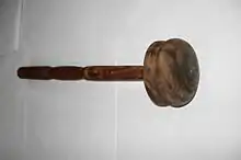 Traditionally, Hyderabadi haleem is cooked on a low flame of firewood for up to 12 hours in a bhatti (a cauldron covered with a brick and mud kiln). One or two people are required to stir it continuously with wooden paddles throughout its preparation. For home-made Hyderabadi haleem, a Ghotni (a wooden hand masher) is used to stir it until it reaches a sticky-smooth consistency, similar to minced meat.[10][11]