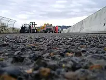 The process of hydro scarification (a.k.a. hydroscarification or scarification) uses ultra high pressure water to remove the top surface of a concrete bridge or road surface. Usually the removal is within 1/4" to 3/4" at the most, but can be of any depth above the top layer of rebar. Removal of this type is done in order to provide a good microfracture-free surface for bonding with new, sound concrete.[2] Much like applying oil and chips to an asphalt road, this helps extend the useful life of the bridge decking and road surface by delaying the need for complete replacement.