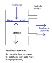 Instead of using a series of linear reservoirs, also the model of a non-linear reservoir can be used.[39]
