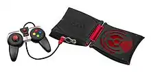 The HyperScan is a home video game console from the toy company Mattel. It is unique in that it includes a 13.56 MHz radio-frequency identification (RFID) scanner that reads and writes to the "cards" which, in turn, activate features in and save data from the game. Players are able to enhance the abilities of their characters by scanning cards.[1]