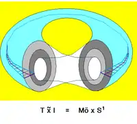 Two simple examples of I-bundles are the annulus and the Möbius band, the only two possible I-bundles over the circle . The annulus is a trivial or untwisted bundle because it corresponds to the Cartesian product , and the Möbius band is a non-trivial or twisted bundle. Both bundles are 2-manifolds, but the annulus is an orientable manifold while the Möbius band is a non-orientable manifold.