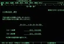 The original Bunsho Program and emulators booted from a floppy disk without Nihongo DOS. They used a proprietary disk format which couldn't be read from Nihongo DOS, so users had to replace floppy disks or set the boot partition to switch between two programs. Also, they had to use a conversion program to exchange data.[4] Later, they were ported for Nihongo DOS, and functions were gradually implemented. 3270 Kanji Emulation, 5250 Kanji Emulation and Bunsho Program were superseded by Nihongo 3270 PC in October 1983, Nihongo 5250 PC in September 1984 and DOS Bunsho Program in May 1986.[5][6]