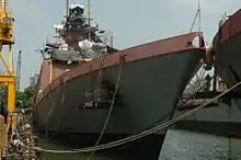 INS Shivalik (F47) is the lead ship of her class of stealth multi-role frigates built for the Indian Navy. She is the first stealth warship built by India.[5] She was built at the Mazagon Dock Limited (MDL) located in Mumbai. Construction of the vessel began in 2001 and was completed by 2009. She underwent sea trials from thereon before being commissioned on 29 April 2010.[6][7]