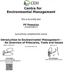 The following education certificate examples use the URI-RAW DigSig envelope format. The URI format allows a generic barcode reader to read the DigSig where after it can be verified online using the URI of the trusted issuer of the DigSig. Often the ISO/IEC 20248 compliant smartphone application (App) will be available on this website for down load, where after the DigSig can be verified offline. Note, a compliant App must be able to verify DigSigs from any trusted DigSig issuer.