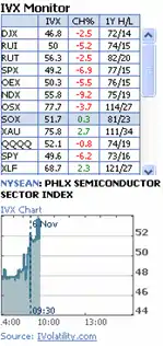 IVX is a volatility index providing an intraday, VIX-like measure for any of US securities and exchange traded instruments. IVX is the abbreviation of Implied Volatility Index and is a popular measure of the implied volatility of each individual stock. IVX represents the cost level of the options for a particular security and comparing to its historical levels one can see whether IVX is high or low and thus whether options are more expensive or cheaper. IVX values can be compared for the stocks within one industry to find names which significantly differ from what is observed in overall sector.