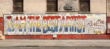 Beginning in the late 1970s, and continuing into the 1990s in New York City,[1] several prominently located murals of impressive size proclaimed I AM THE BEST ARTIST to all who walked or drove past them along the streets of SoHo.[2][3][4] The murals were the creations of artist René Moncada,[5] who lived in the neighborhood.