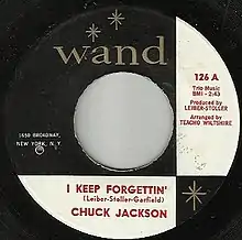 "I Keep Forgettin" is a song by Chuck Jackson, written by Jerry Leiber, Mike Stoller, and Garfield.[1] It appears on his second studio album Any Day Now. It peaked at No. 55 on the Billboard Top 100 and remained on the chart for 7 weeks. It did not chart on the R&B chart. This single is often cited as one of the most innovative yet least commercial singles written and produced by Leiber-Stoller.
